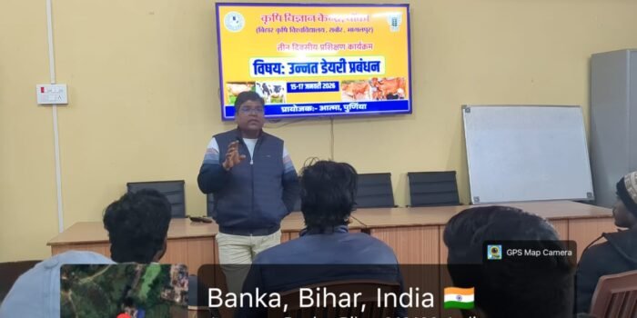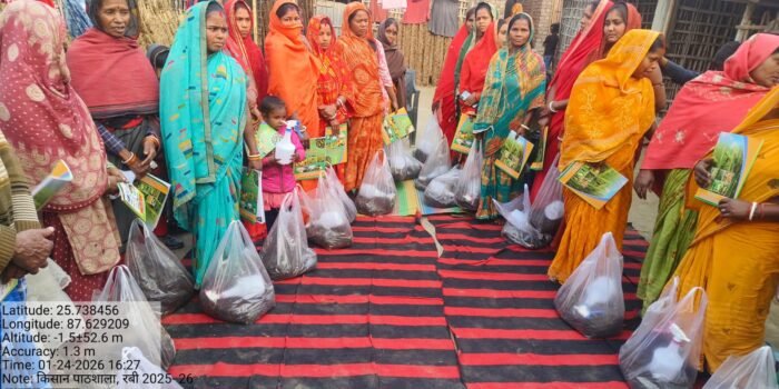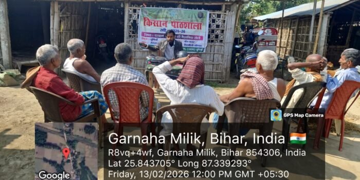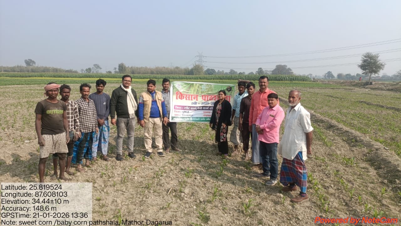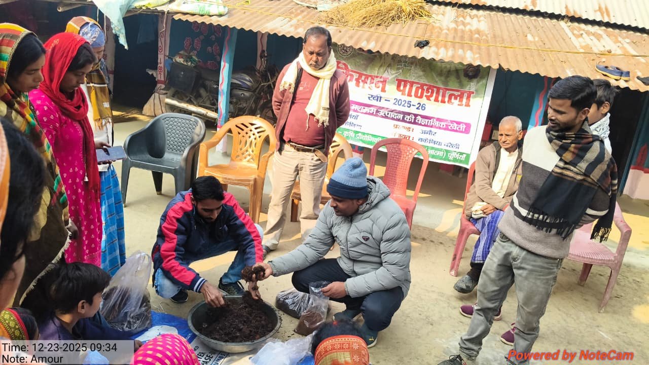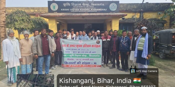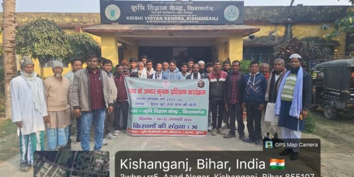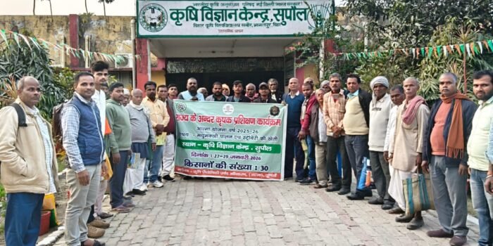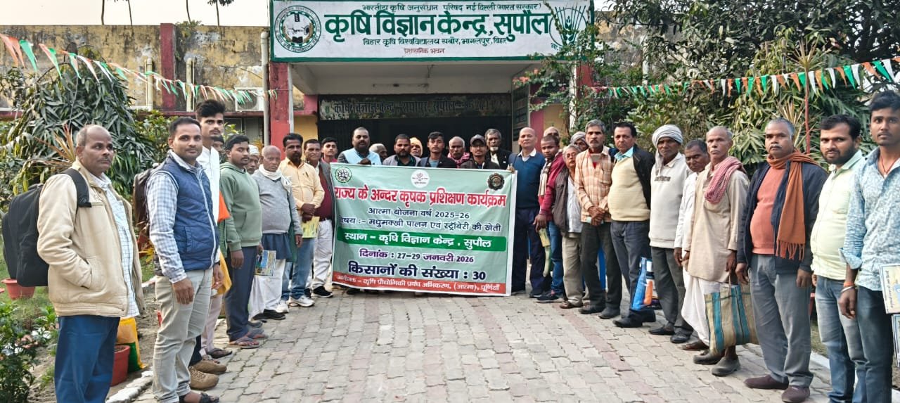 राज्य के अन्दर प्रशिक्षण कार्यक्रम के तहत दिनांक 02-02-2026 से 04-02-2026 तक कृषि विज्ञान केन्द्र (सबौर) भागलपुर मे 3 दिवसीय प्रशिक्षण का आयोजन किया गया है। कार्यक्रम मे रूपौली के 15 किसान एवं भवानीपुर के 15 किसान के सम्मिलित हुए।
