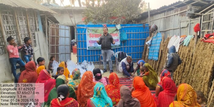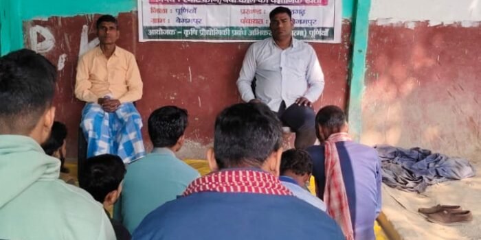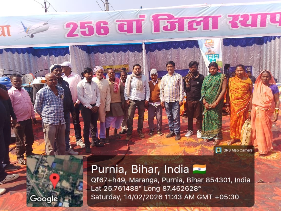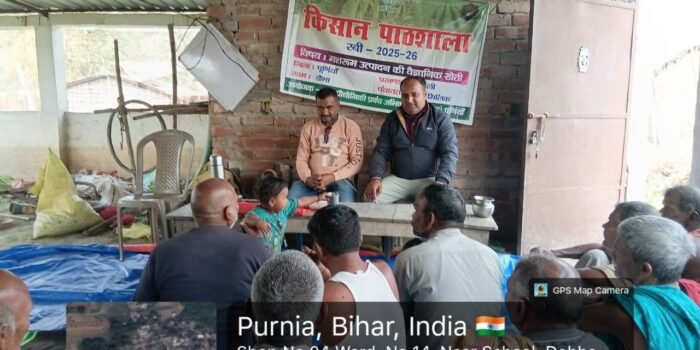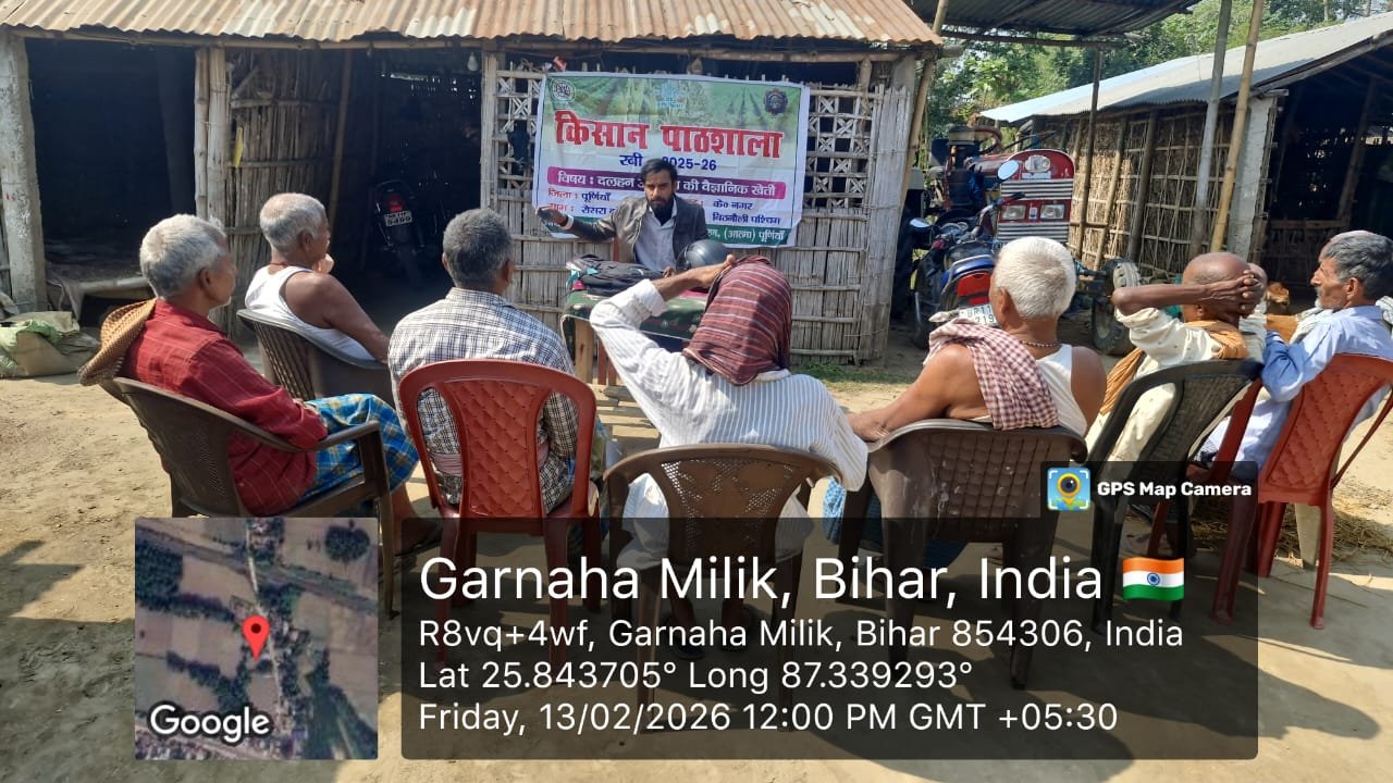 दिनांक 5 जनवरी 2026 को जिला कृषि कार्यालय, पूर्णिया के अंतर्गत एक्सटेंशन ट्रेनिंग सेंटर में किसान–वैज्ञानिक मिलन कार्यक्रम का आयोजन किया गया। इस कार्यक्रम में जिला कृषि पदाधिकारी, उप परियोजना निदेशक (ATMA), सहायक निदेशक (पादप संरक्षण), मत्स्य विकास पदाधिकारी, प्रखंड कृषि पदाधिकारी, ATMA कर्मी तथा कृषि विज्ञान केंद्र (केवीके), जलालगढ़ के वैज्ञानिकों ने सहभागिता की।