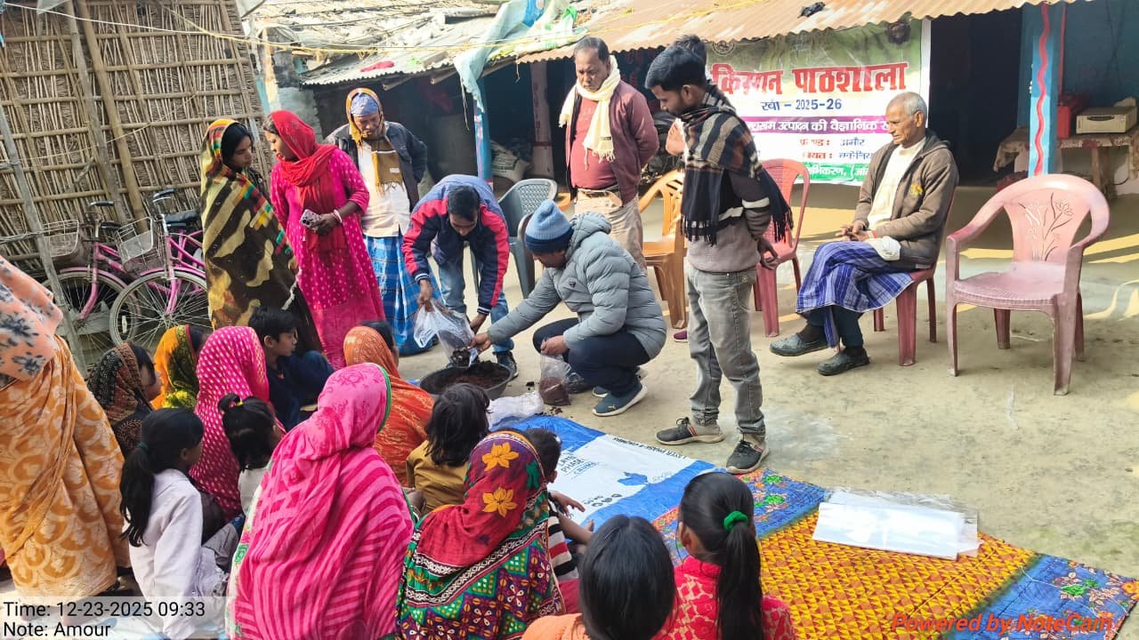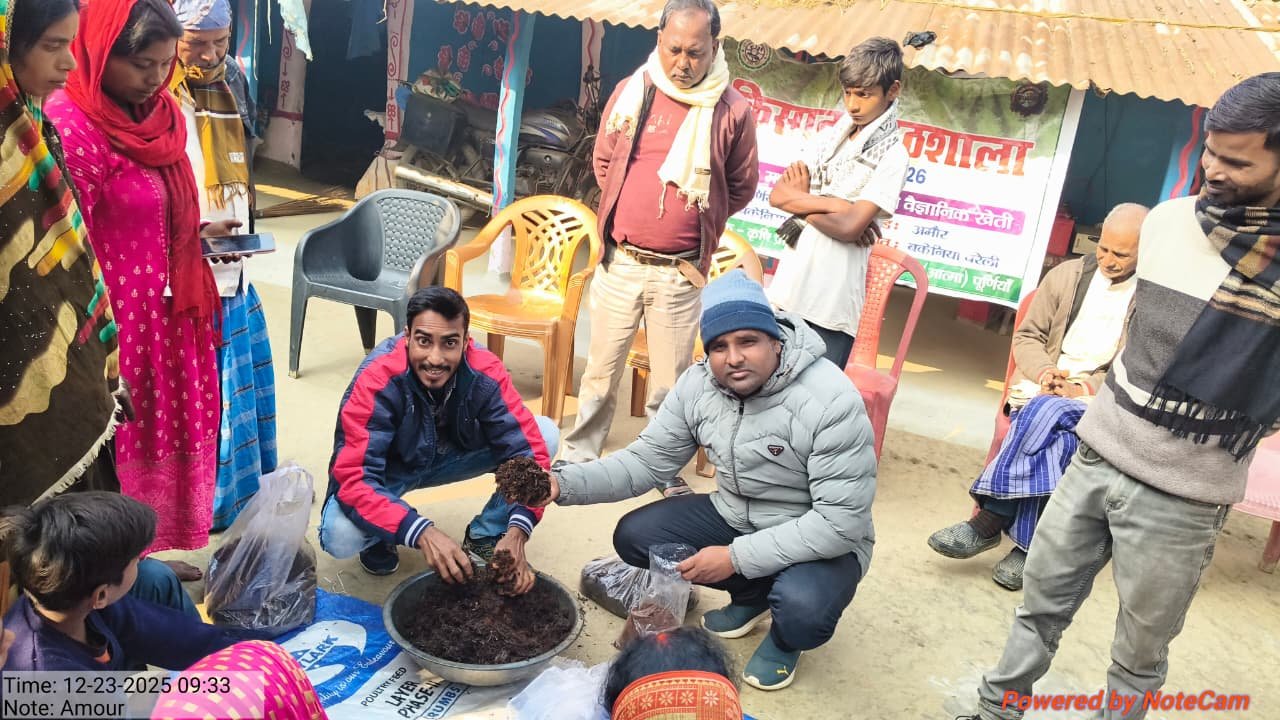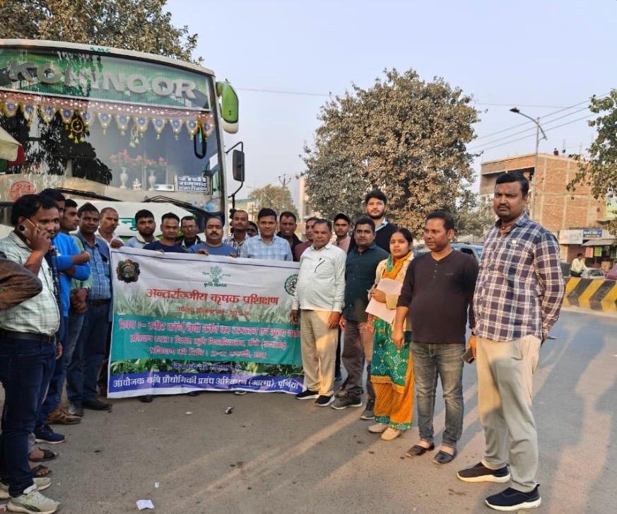 दिनांक 20 दिसंबर 2025 को भारतीय सब्जी अनुसंधान केंद्र वाराणसी में पांच दिवसीय कृषक प्रशिक्षण सह परिवार मन में पूर्णिया जिला के सभी 14 प्रखंडों के किसानों के द्वारा भाग लिया जा रहा है इसमें कुल 30 कृषक भाग लेंगे इस प्रशिक्षण में टीम लीडर के रूप में श्री आनंद सहायक तकनीकी प्रबंधक बनमनखी एवं श्री दिलीप कुमार कंप्यूटर ऑपरेटर आत्मा से भाग ले रहे हैं