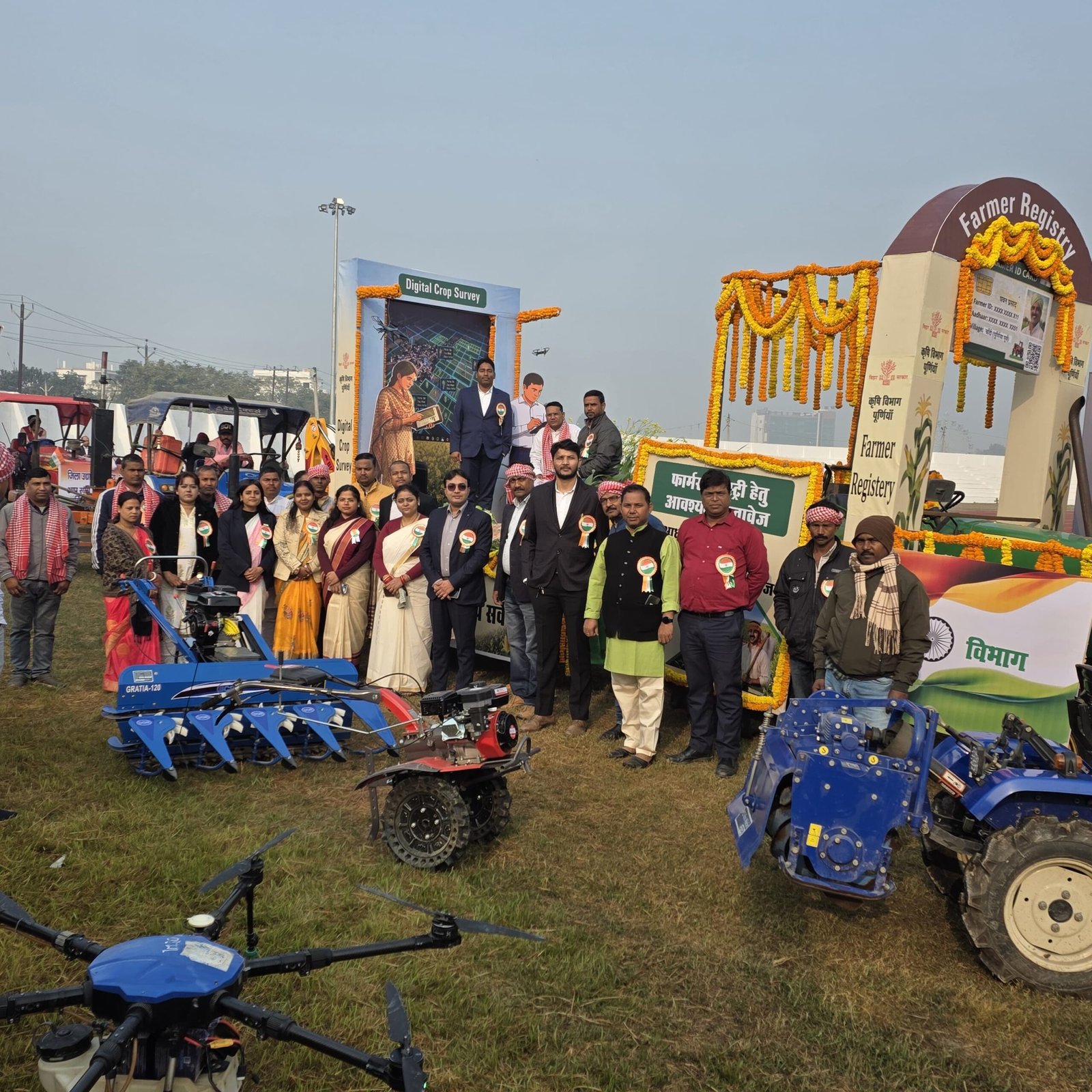 जिला स्थापना दिवस के अवसर पर कृषि यांत्रिकीकरण मेला में किसानों का परिभ्रमण